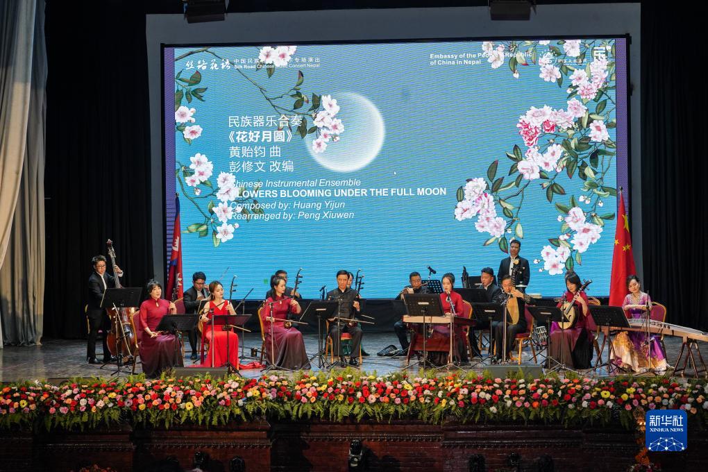 8月31日,演奏者在尼泊爾首都加德滿(mǎn)都的“絲路花語(yǔ)”中國民族音樂(lè )專(zhuān)場(chǎng)演出上奏樂(lè )。