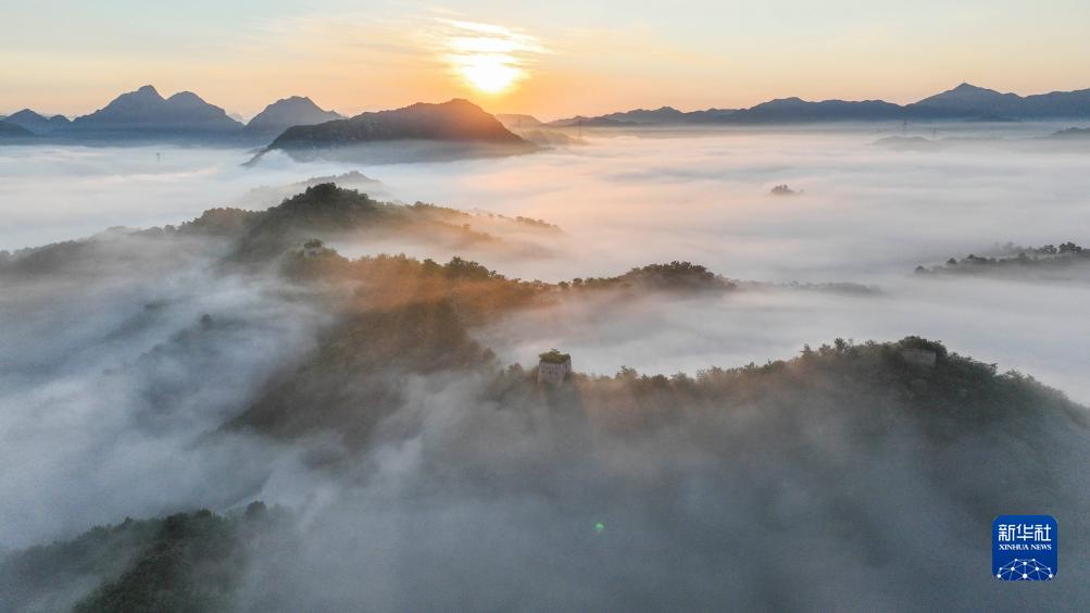 這是9月2日拍攝的河北省遵化市小廠(chǎng)鄉洪山口長(cháng)城晨景(無(wú)人機照片)。