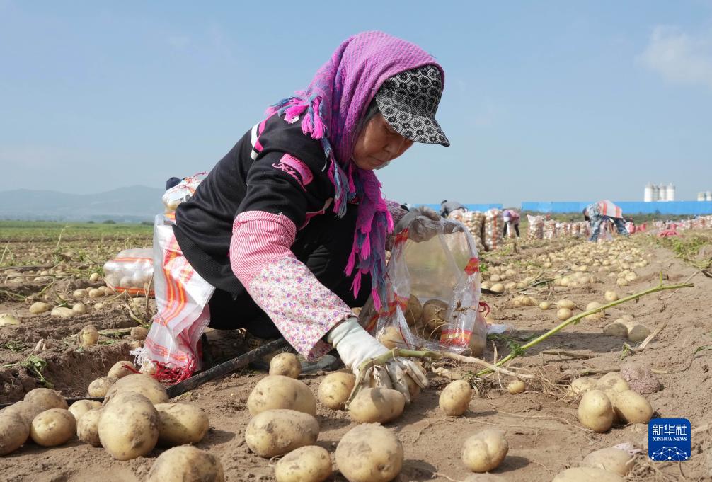 9月3日,河北省圍場(chǎng)滿(mǎn)族蒙古族自治縣御道口鎮御道口村一家馬鈴薯種植合作社社員在收獲馬鈴薯。