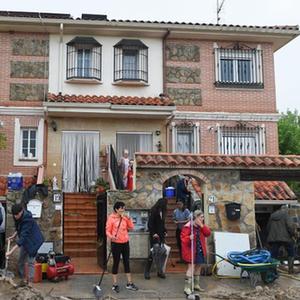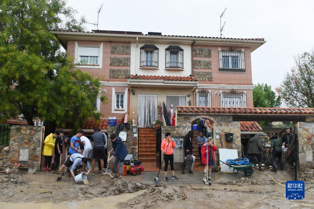 9月4日,居民在西班牙馬德里比利亞曼塔鎮清理淤泥。