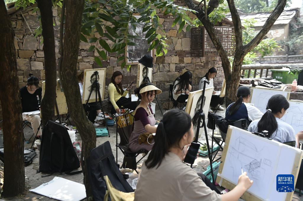 9月5日,學(xué)生在林州市石板巖鎮高家臺村寫(xiě)生。
