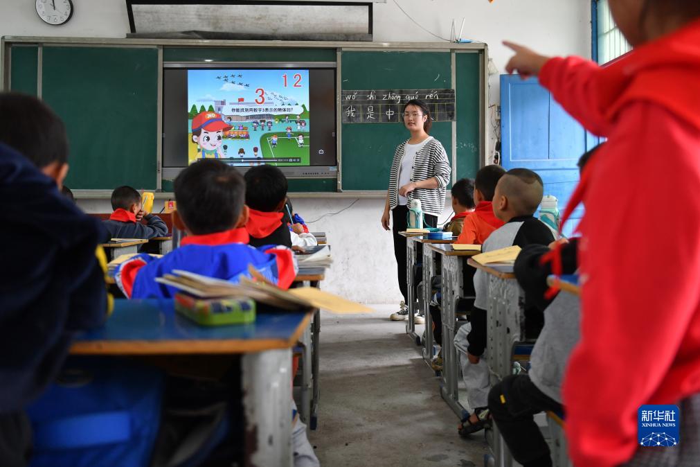 9月4日,報木小學(xué)的老師劉鳳英在給一年級和三年級的學(xué)生上課。
