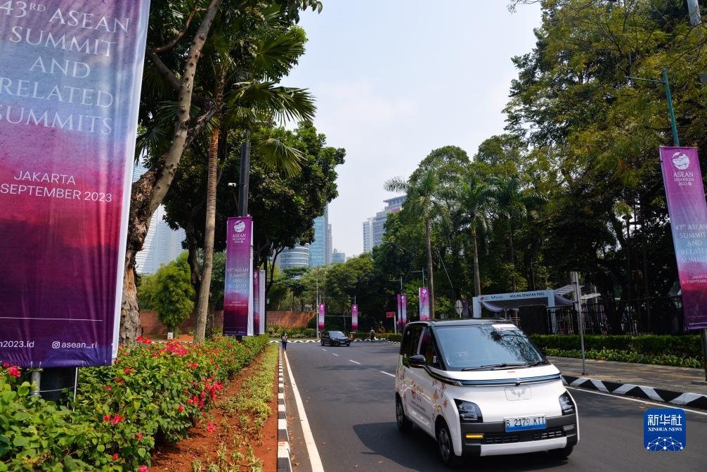 9月6日,在印度尼西亞雅加達,一輛五菱新能源車(chē)Air ev行駛在第43屆東盟峰會(huì )會(huì )場(chǎng)附近。