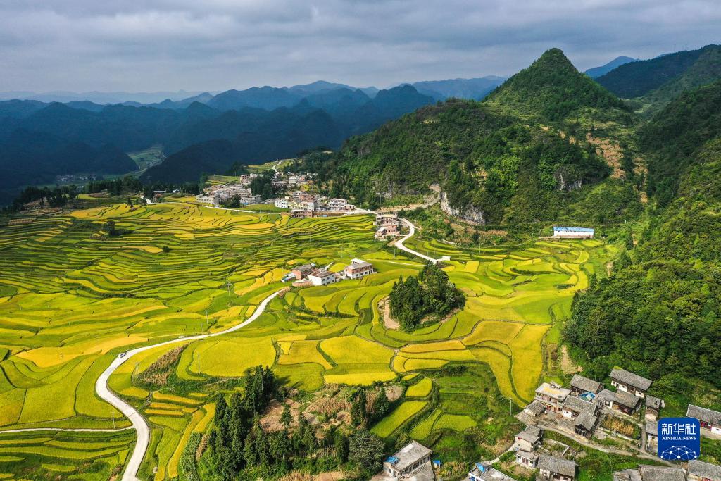 這是9月7日拍攝的貴州省貴定縣沿山鎮臘利梯田與村莊(無(wú)人機照片)。