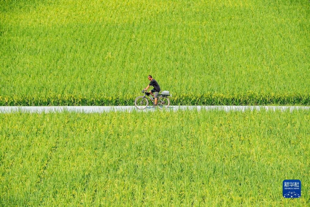 時(shí)下,位于重慶市大足區拾萬(wàn)鎮長(cháng)虹村的隆平五彩田園迎來(lái)秋收季,300畝彩色水稻勾勒出金秋好“豐”景。