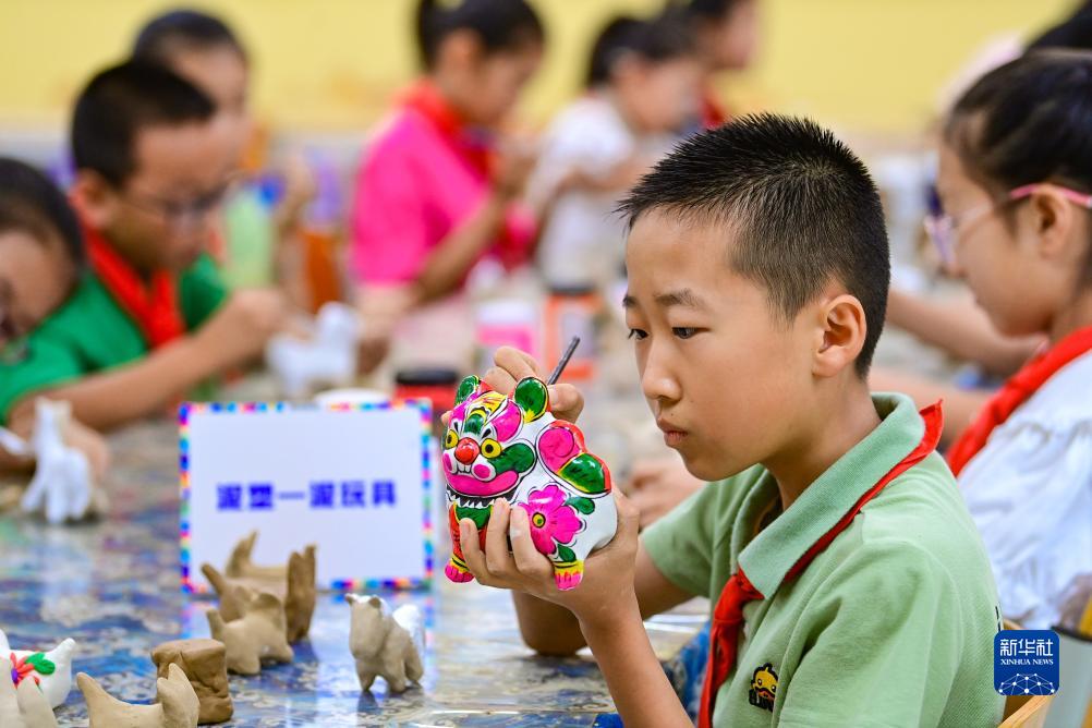 9月8日,鄂爾多斯市康巴什區第八小學(xué)學(xué)生在美術(shù)作品創(chuàng )意比賽中創(chuàng )作彩繪泥塑。