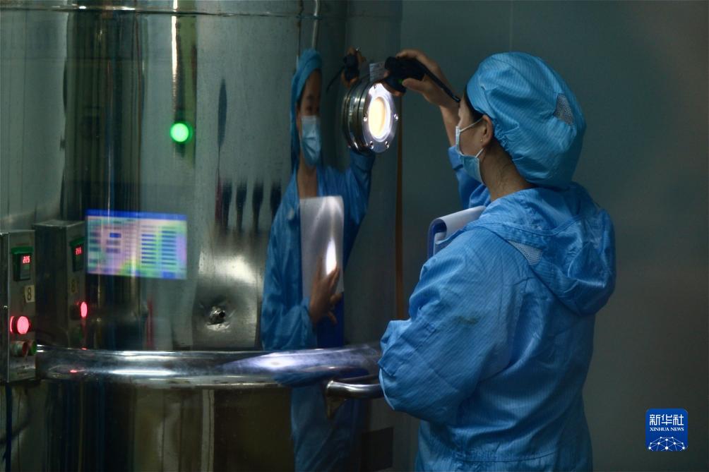 9月8日,在山陽(yáng)縣食用菌產(chǎn)業(yè)園菌種培養車(chē)間內,工人在檢驗記錄菌種生長(cháng)情況。