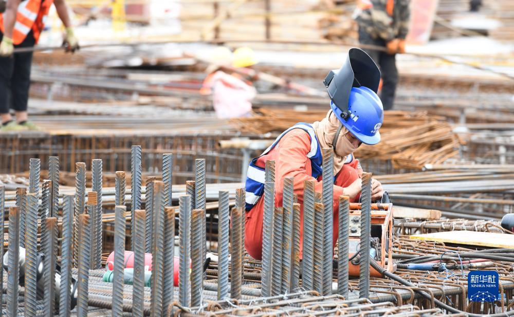 9月9日,工人在??谛潞8酆湍细邸岸€(xiàn)口岸”(貨運)集中查驗場(chǎng)所建設項目上施工作業(yè)。