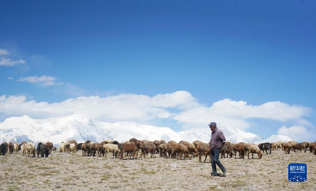在“冰川之父”慕士塔格峰腳下,新疆塔什庫爾干塔吉克自治縣塔合曼鄉境內的一片天然草場(chǎng)吸引周邊鄉村的牧羊人在此放牧。進(jìn)入秋季以來(lái),草場(chǎng)漸漸泛黃,屹立于遠處的慕士塔格峰和公格爾九別峰在藍天白云的映襯下格外壯美,一幅寧靜悠遠的牧羊圖引人入勝。