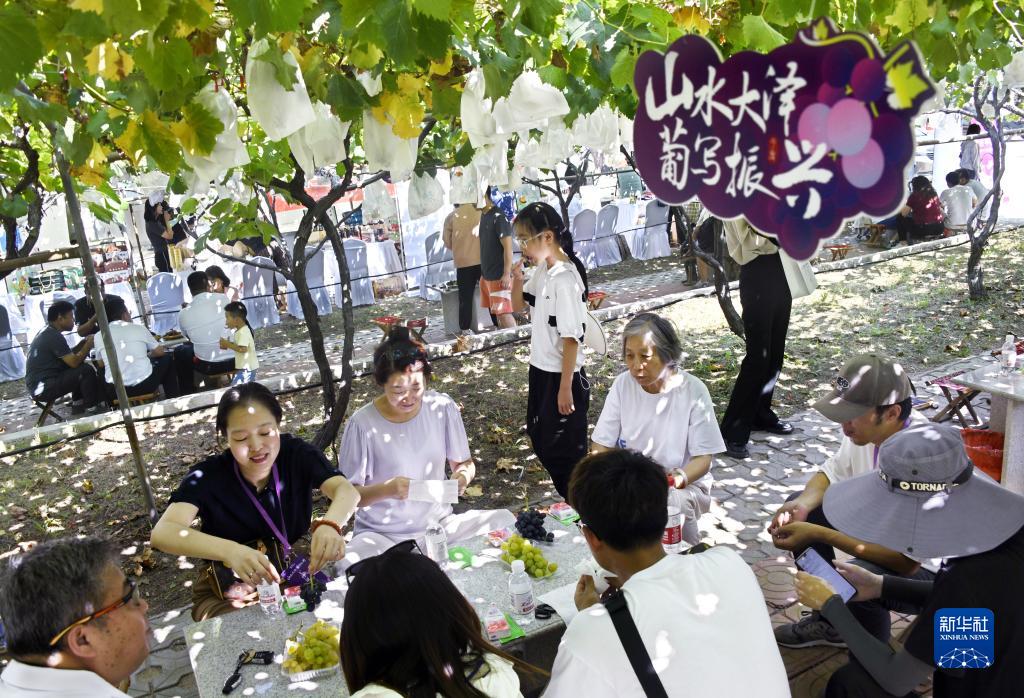 9月9日,市民和游客在山東省平度市大澤山鎮葡萄大觀(guān)園內休閑游玩。