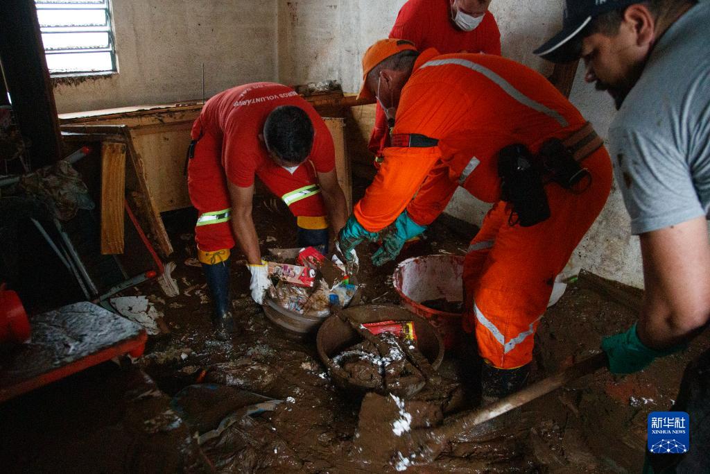 9月9日,救援人員在巴西南里奧格蘭德州穆孫市清理一所學(xué)校。