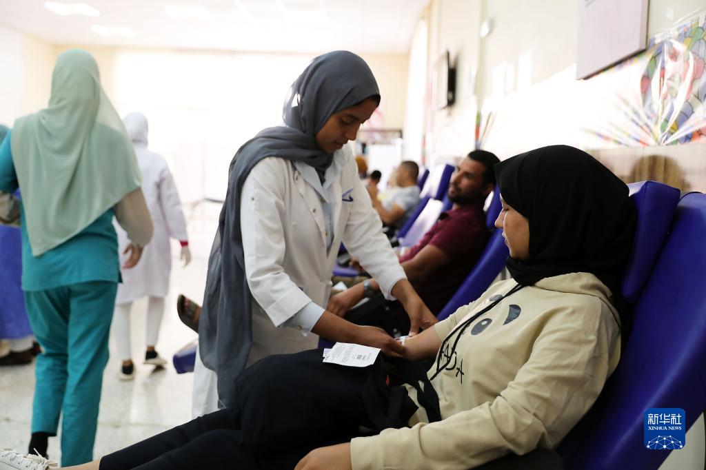 9月12日,民眾在摩洛哥馬拉喀什一家血液捐獻中心獻血。
