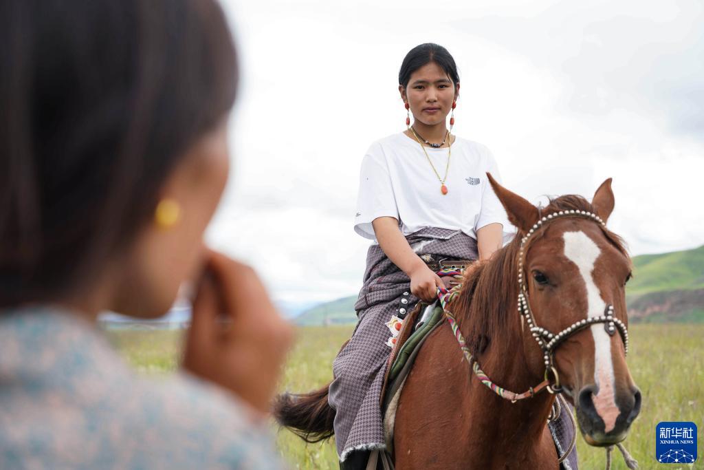 8月17日,在青海省黃南藏族自治州河南蒙古族自治縣多松鄉多松村,扎西曲培的女兒仁青卓瑪(右)在和母親斗格吉聊天。新華社記者 王靜頤 攝