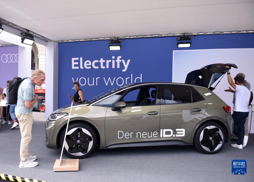 9月13日,觀(guān)眾在奧地利維也納電動(dòng)汽車(chē)日活動(dòng)現場(chǎng)參觀(guān)一輛大眾電動(dòng)車(chē)。