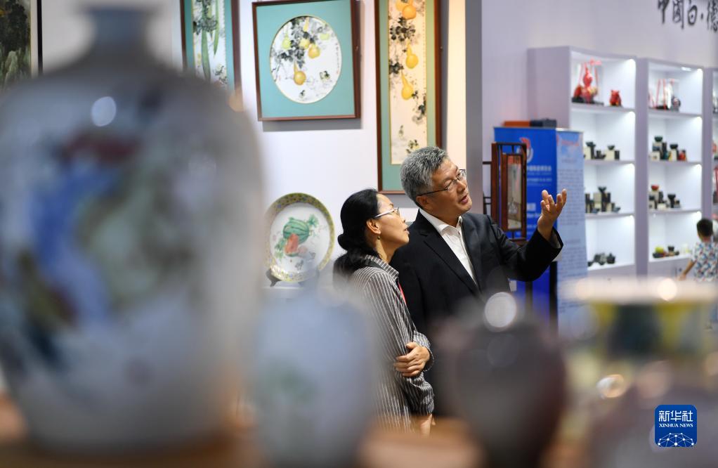 9月16日,參觀(guān)者在第二十四屆唐山中國陶瓷博覽會(huì )現場(chǎng)參觀(guān)。