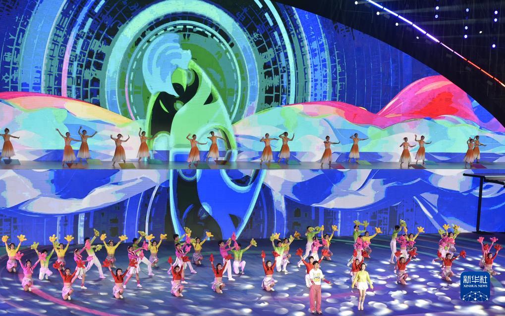 9月16日拍攝的第十一屆中國·焦作國際太極拳大賽暨2023云臺山旅游節開(kāi)幕式文藝演出現場(chǎng)。