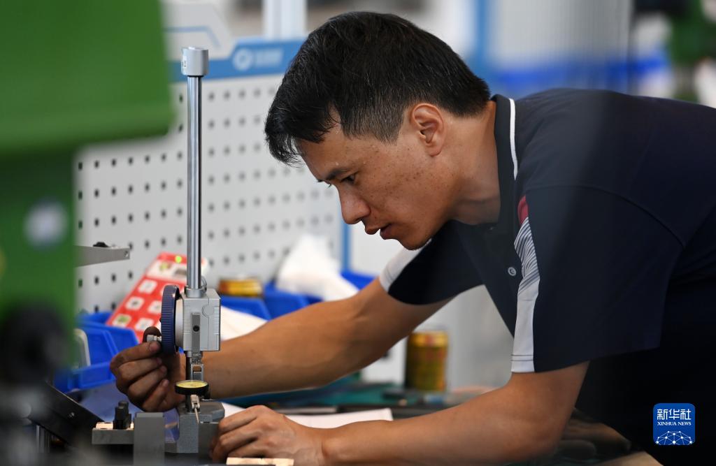 9月17日,參賽選手在參加裝配鉗工項目比賽。
