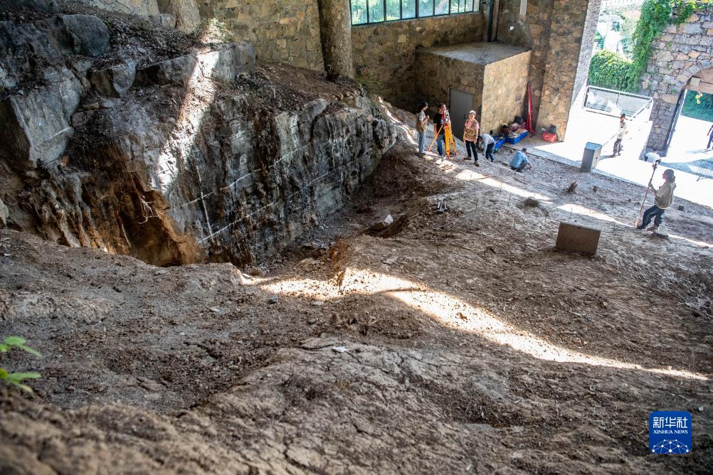 8月16日,工作人員在位于重慶市巫山縣廟宇鎮的龍骨坡遺址上開(kāi)展勘測工作。