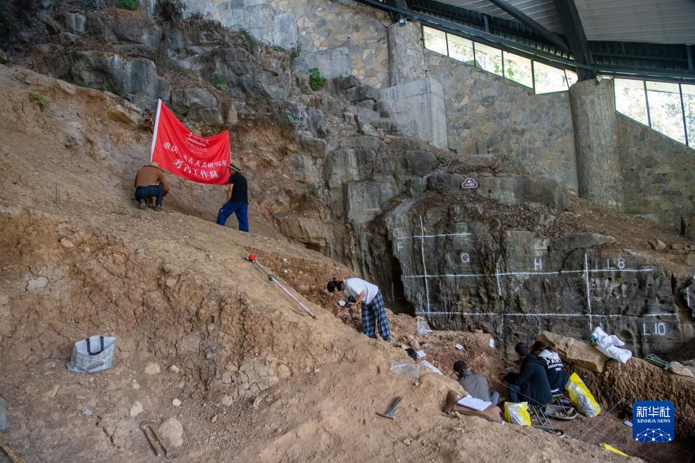 9月14日,考古發(fā)掘隊隊員在龍骨坡遺址工作。