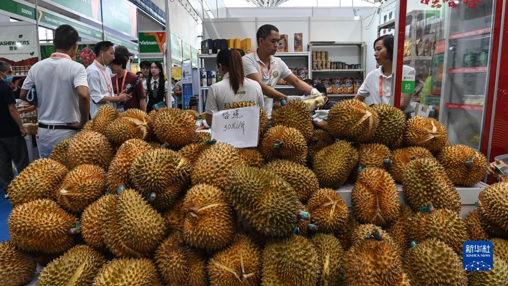 9月18日,在南寧國際會(huì )展中心,越南客商在銷(xiāo)售榴蓮。