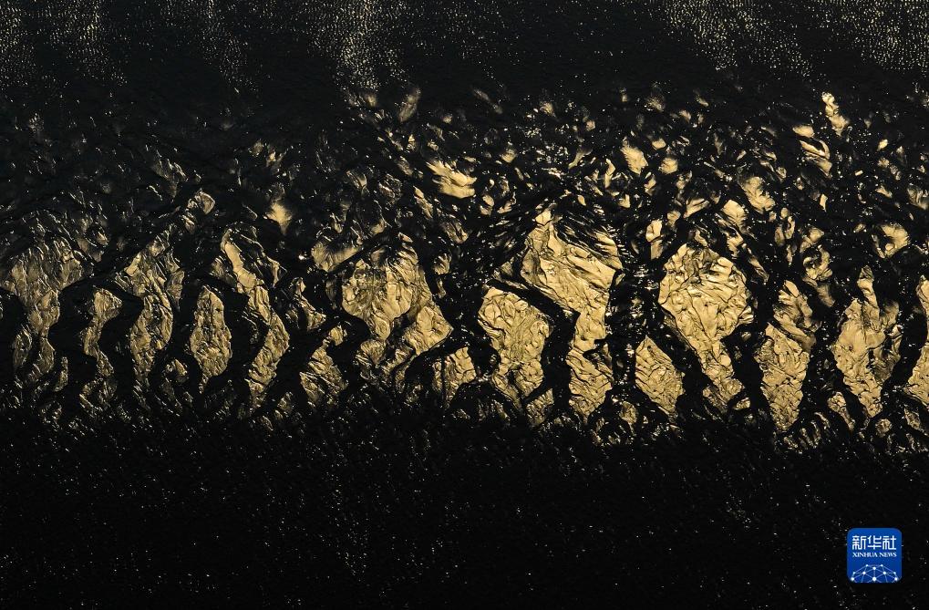 鹽城東臺條子泥濕地灘涂景色(2023年9月1日攝,無(wú)人機照片)。