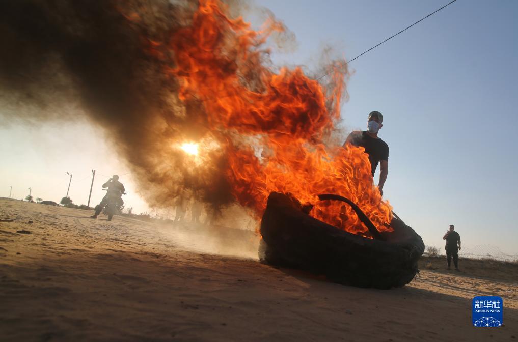 9月19日,在加沙地帶南部加沙與以色列邊境圍欄附近,巴勒斯坦抗議者參與示威活動(dòng)。