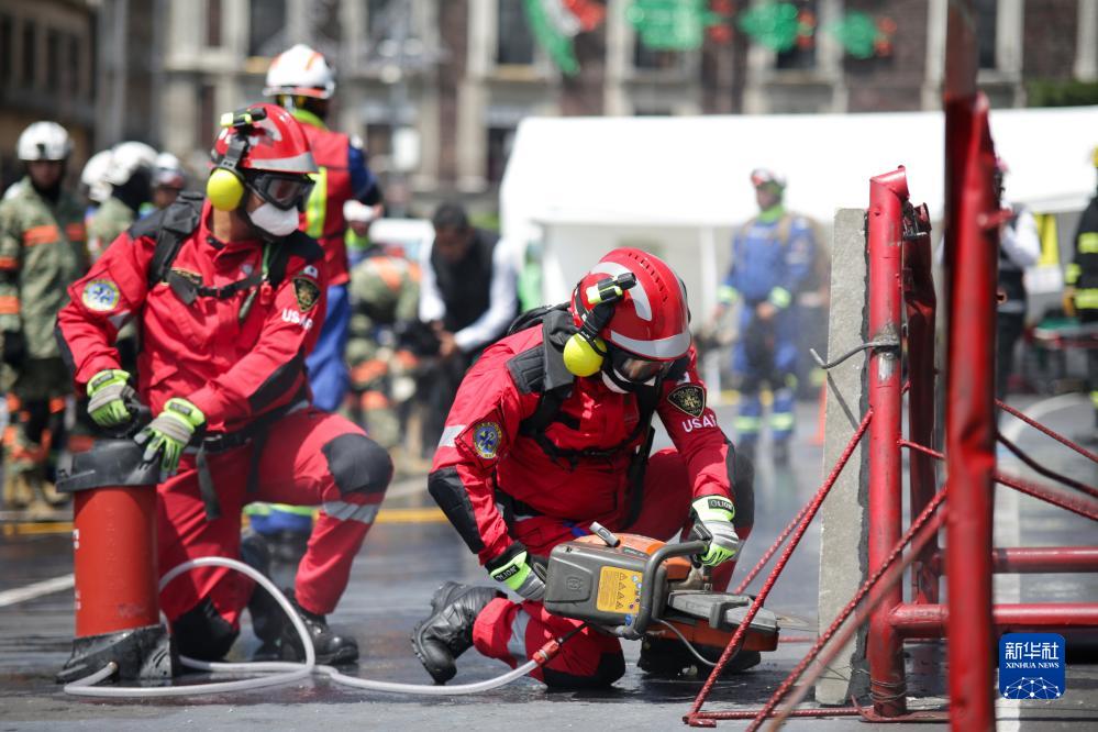 9月19日,救援人員在墨西哥首都墨西哥城參加地震演習。