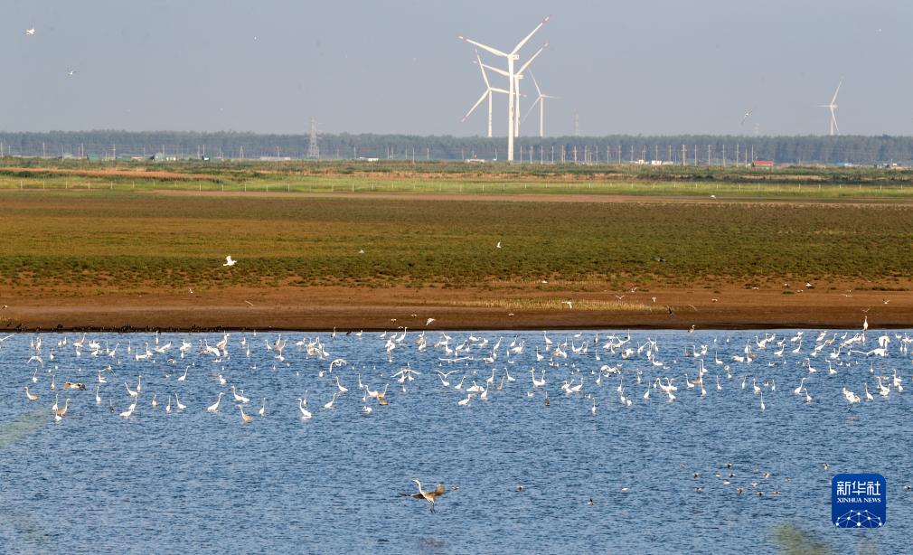 群鳥(niǎo)翔集在東臺條子泥濕地(8月20日攝)。