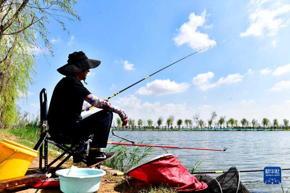 9月20日,在鄆城縣張營(yíng)街道鄉村振興示范園,一名市民在休閑垂釣。