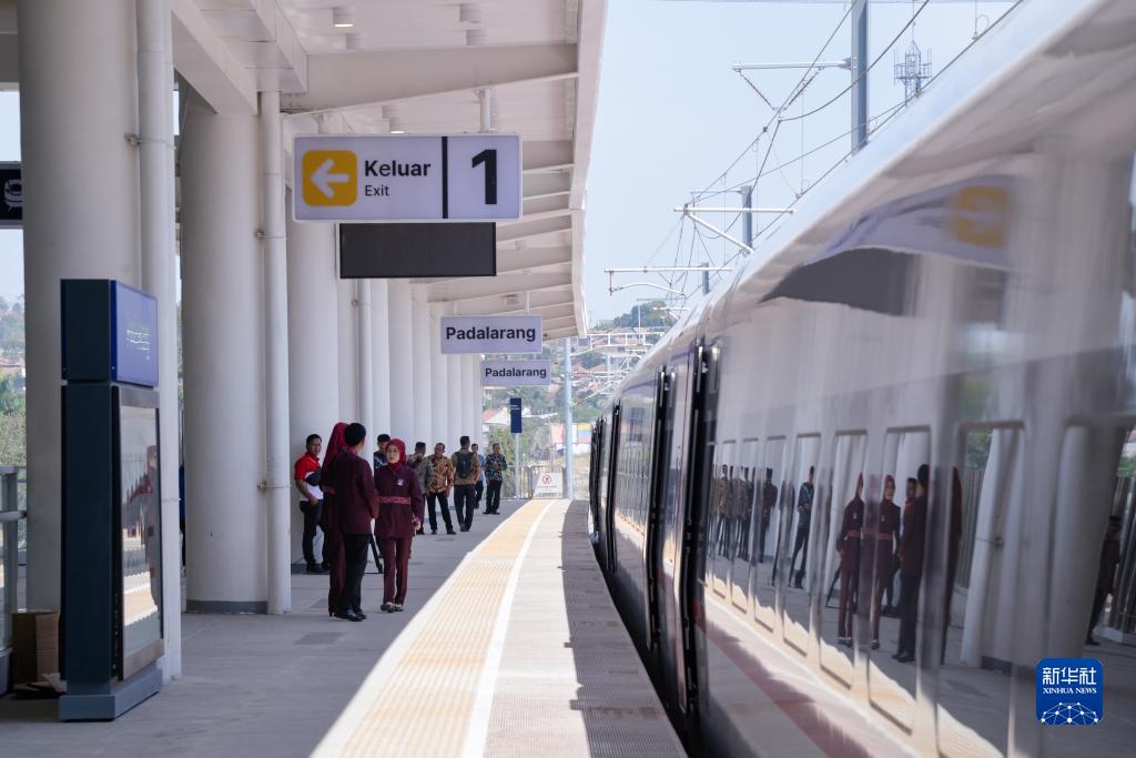 10月2日,一列雅萬(wàn)高鐵動(dòng)車(chē)組??吭谟《饶嵛鱽喤吝_拉朗車(chē)站。