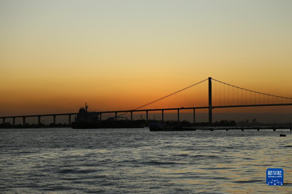 這是莫桑比克首都馬普托的馬普托大橋(2023年8月30日攝)。超大懸索橋馬普托大橋飛架天險,橫跨馬普托灣,該橋極大便利了馬普托灣兩岸交通,成為莫桑比克縱貫南北、連接南非的交通主干道的重要組成部分。
