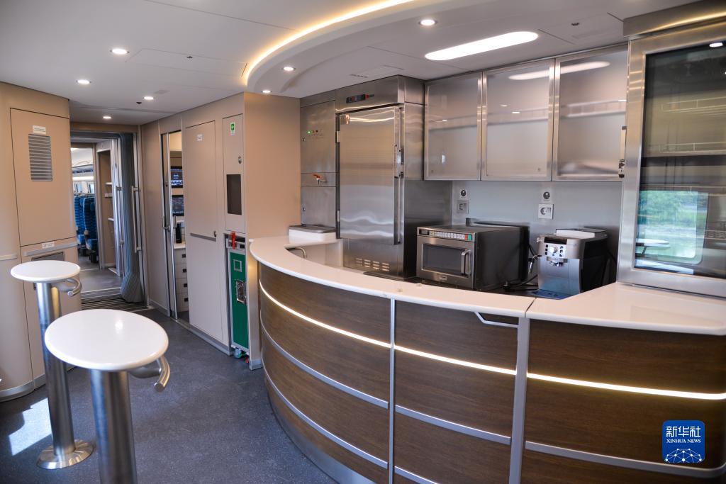 這是在印度尼西亞雅萬(wàn)高鐵高速動(dòng)車(chē)組上拍攝的餐車(chē)(9月4日攝)。