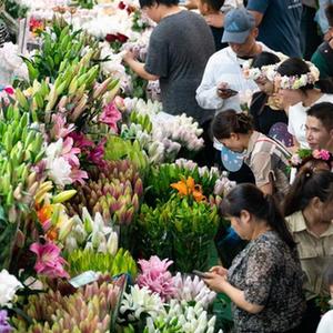 中秋國慶長(cháng)假期間,不少市民游客前往云南省昆明市的斗南花卉市場(chǎng)選購鮮花。