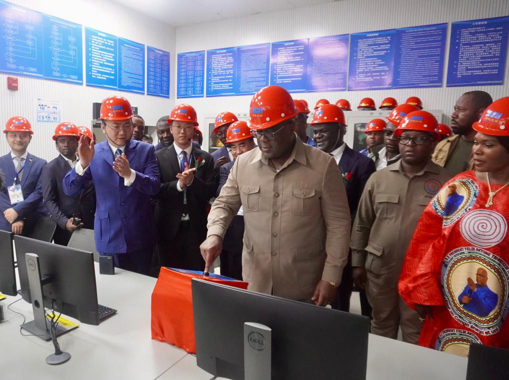 10月6日,剛果(金)總統齊塞克迪(中)在位于盧阿拉巴省的布桑加水電站按下發(fā)電機組運行總按鈕,這標志著(zhù)布桑加水電站正式開(kāi)始發(fā)電。