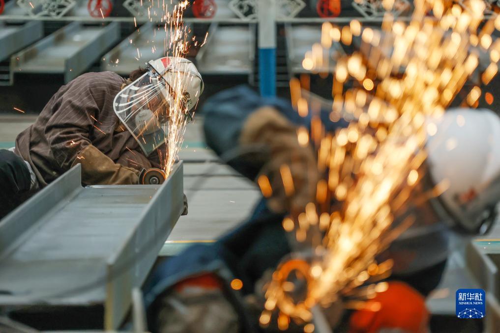 10月7日,工人在海油工程天津智能化制造基地結構預制車(chē)間內進(jìn)行切割作業(yè)。