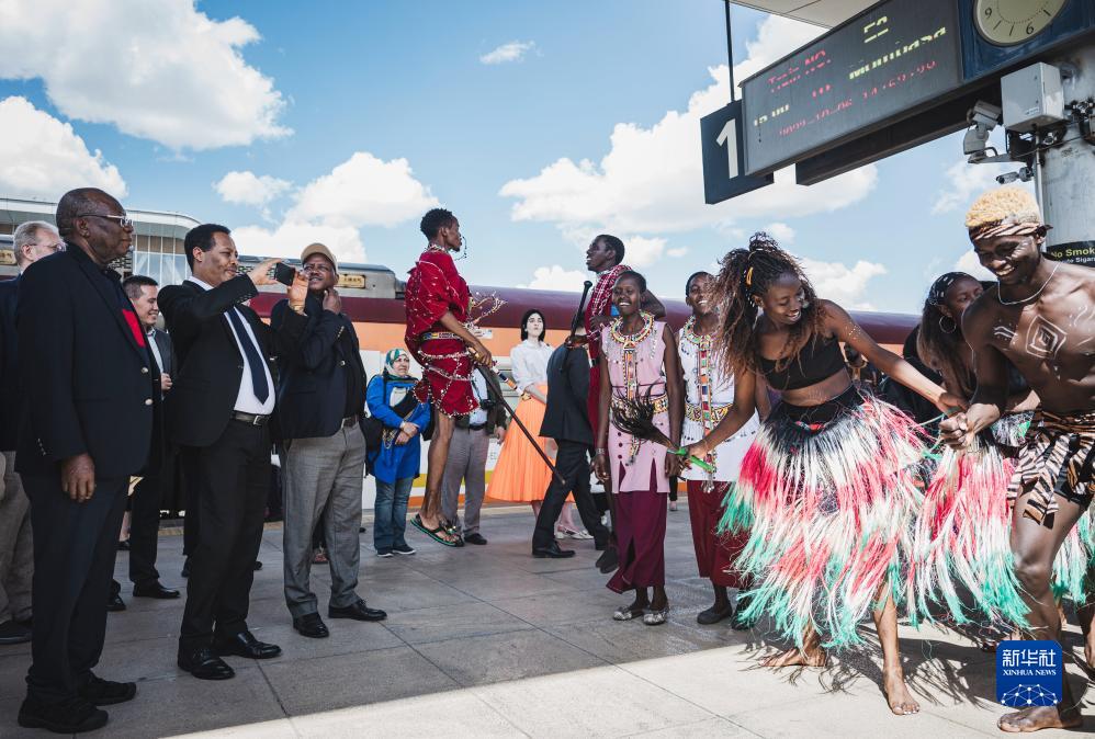 10月6日,多國駐肯使節在肯尼亞內羅畢的蒙內鐵路內羅畢站觀(guān)看文藝演出。