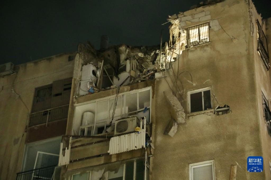這是10月7日在以色列特拉維夫拍攝的一棟遭火箭彈襲擊的建筑。