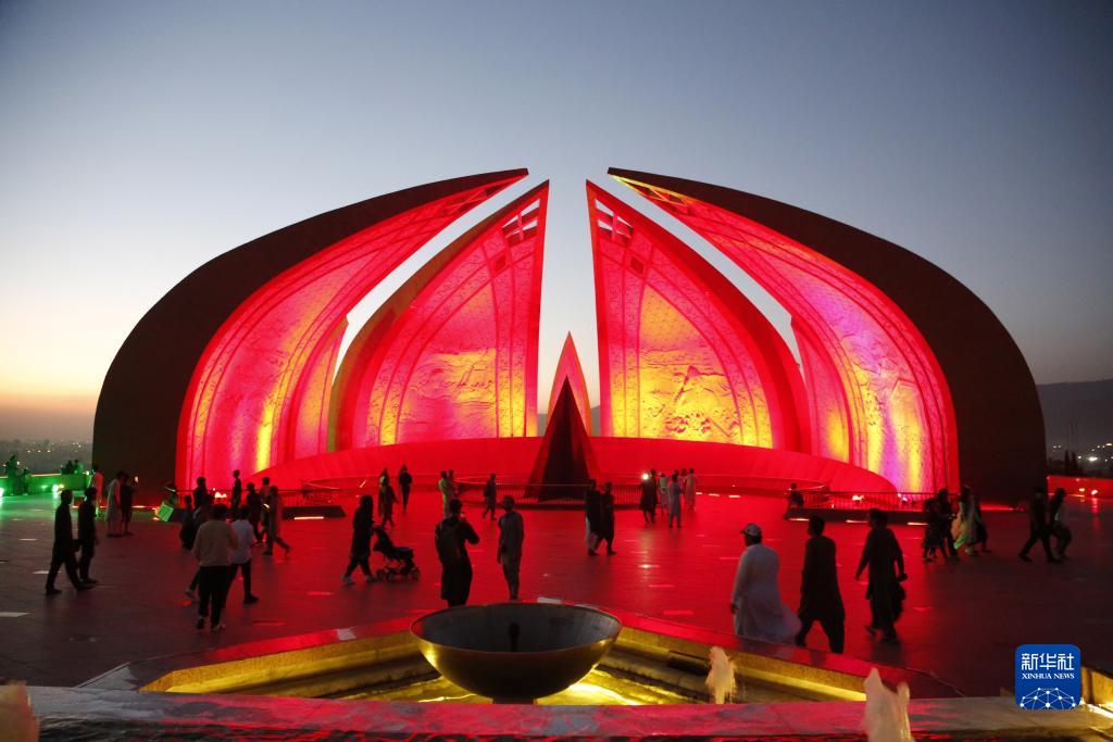 巴基斯坦地標建筑點(diǎn)亮“中國紅”