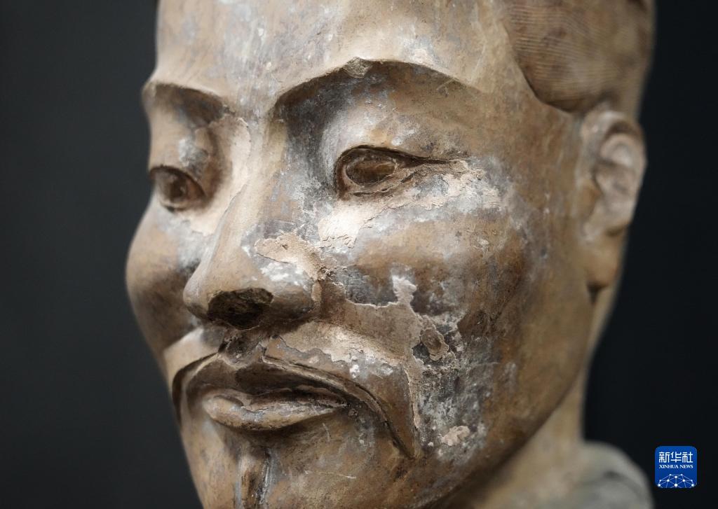這是秦俑臉部彩繪還原修復后的樣貌(8月23日攝)。