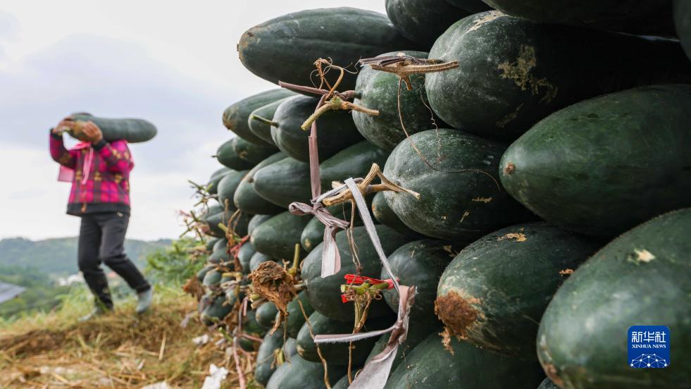 寒露時(shí)節,貴州省玉屏侗族自治縣種植的冬瓜進(jìn)入成熟采收期,農民忙著(zhù)采收、搬運、裝車(chē),田間地頭一派豐收的喜人景象。
