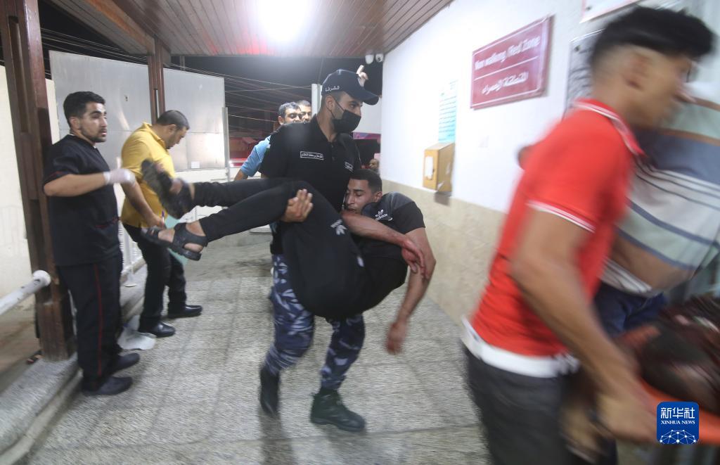 10月8日,在加沙地帶南部城市拉法,一名在以色列空襲中受傷的男子被送到醫院。