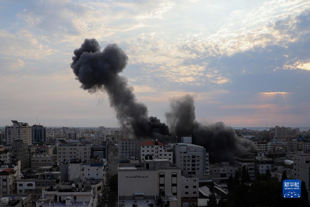 這是10月8日在加沙城拍攝的以色列空襲后的濃煙。