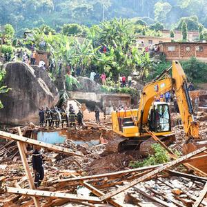 10月9日,人們在喀麥隆雅溫得山體滑坡災害現場(chǎng)開(kāi)展搜救工作。