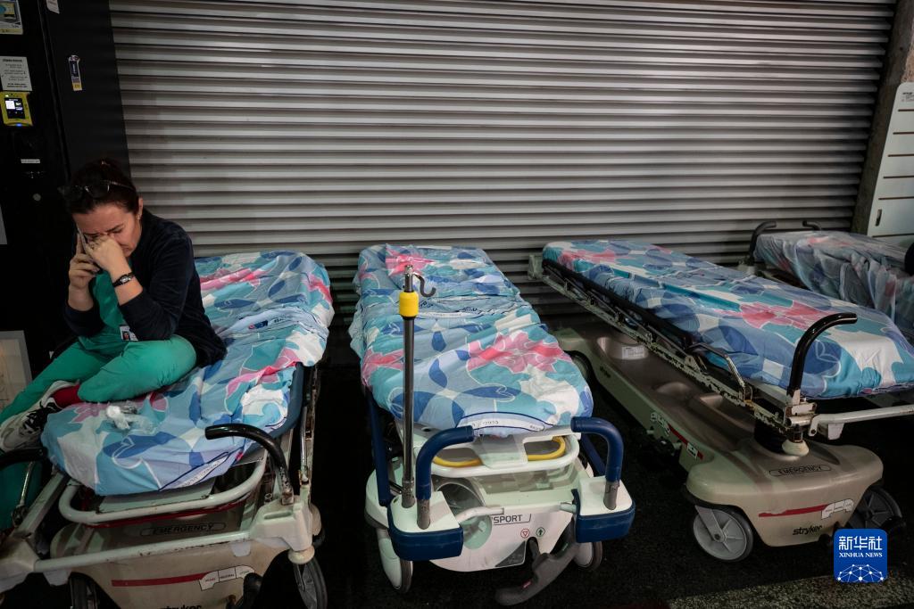 10月9日,在以色列南部城市阿什凱隆一家大型醫院,急救設備處于待命狀態(tài)。