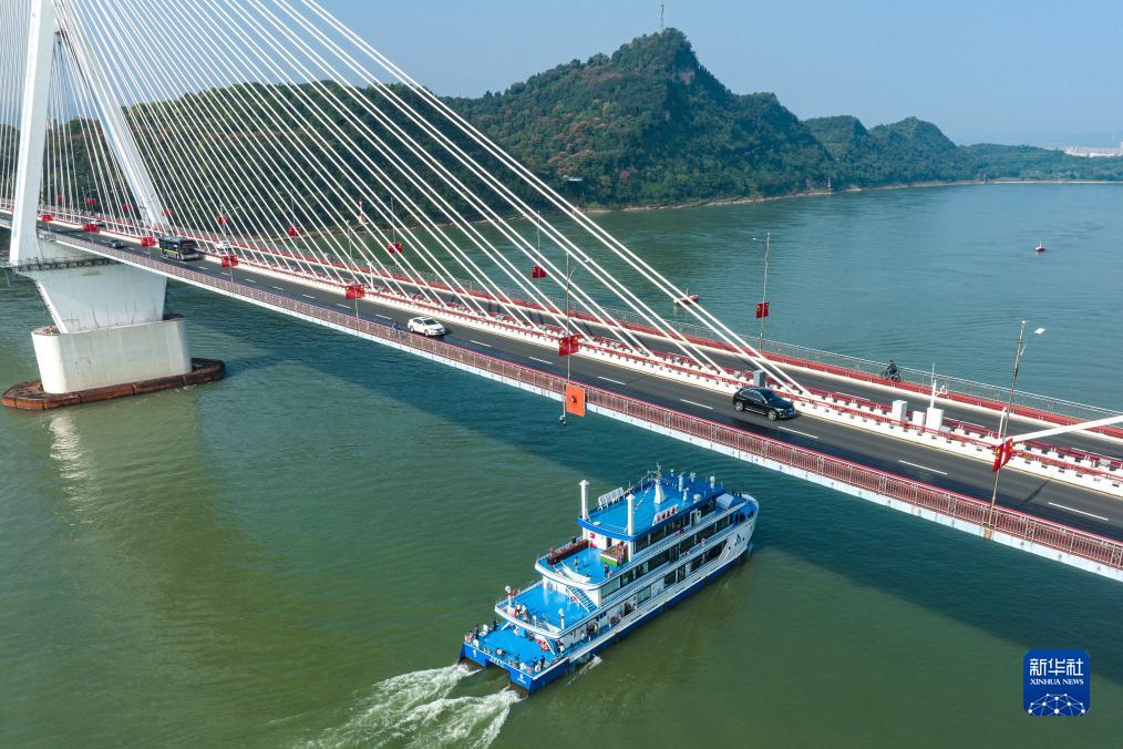 10月11日,“三峽氫舟1”號行駛在長(cháng)江湖北宜昌水域(無(wú)人機照片)。