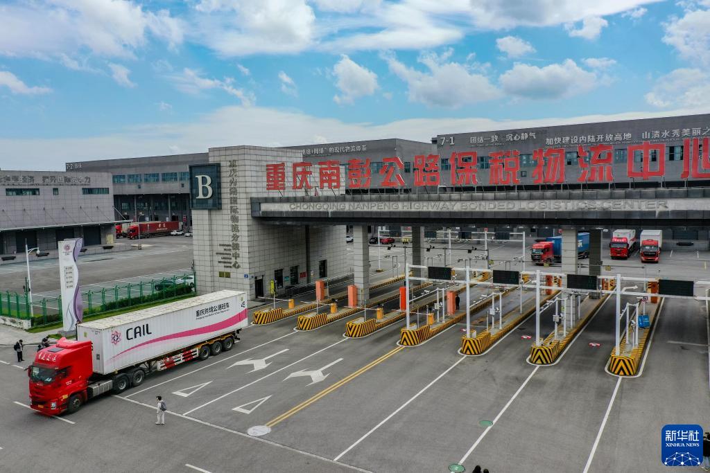 10月11日,滿(mǎn)載筆記本電腦配件、發(fā)電機組件等產(chǎn)品的西部陸海新通道跨境公路班車(chē)從重慶南彭公路保稅物流中心駛出,將途經(jīng)廣西憑祥,直達越南(無(wú)人機照片)。