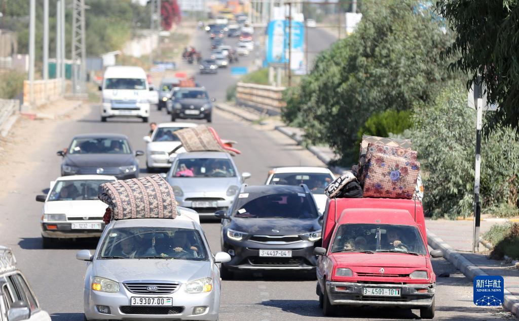 10月13日,在加沙地帶南部地區,人們逃離家園。