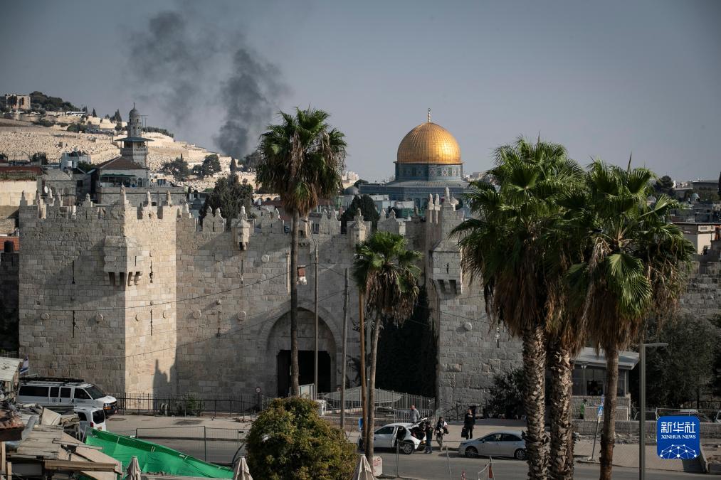 10月13日,居住在東耶路撒冷阿拉伯社區的示威者點(diǎn)燃物品升起黑煙。