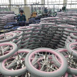 10月16日,平鄉縣一家童車(chē)生產(chǎn)企業(yè)的工人在整理童車(chē)輪胎。