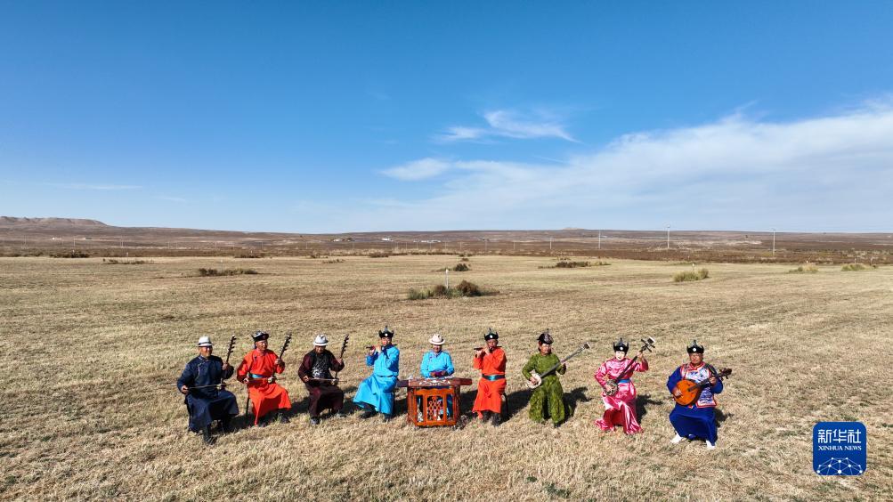 10月16日,樂(lè )隊成員在草原上進(jìn)行“乃日”表演(無(wú)人機照片)。